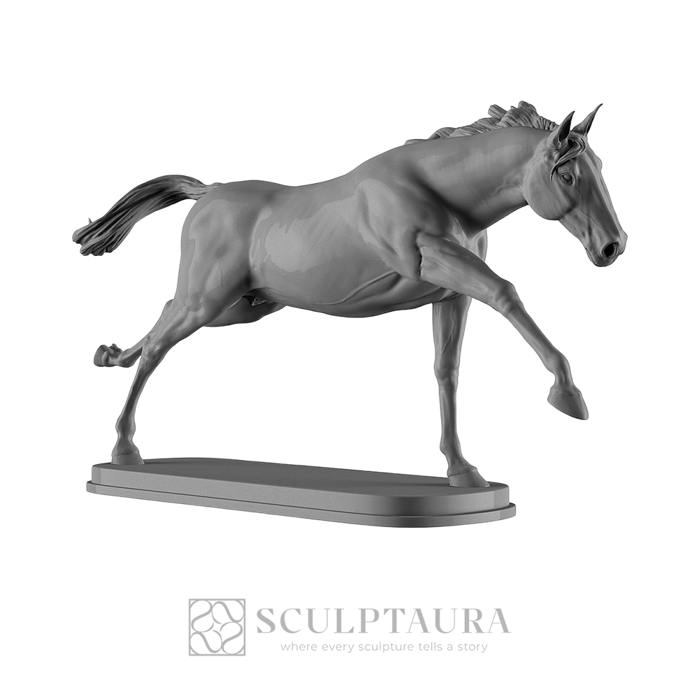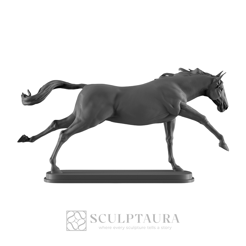 A dynamic equine figure captured in a powerful, elongated running posture. Masterfully sculpted to reflect unparalleled velocity and anatomical precision.