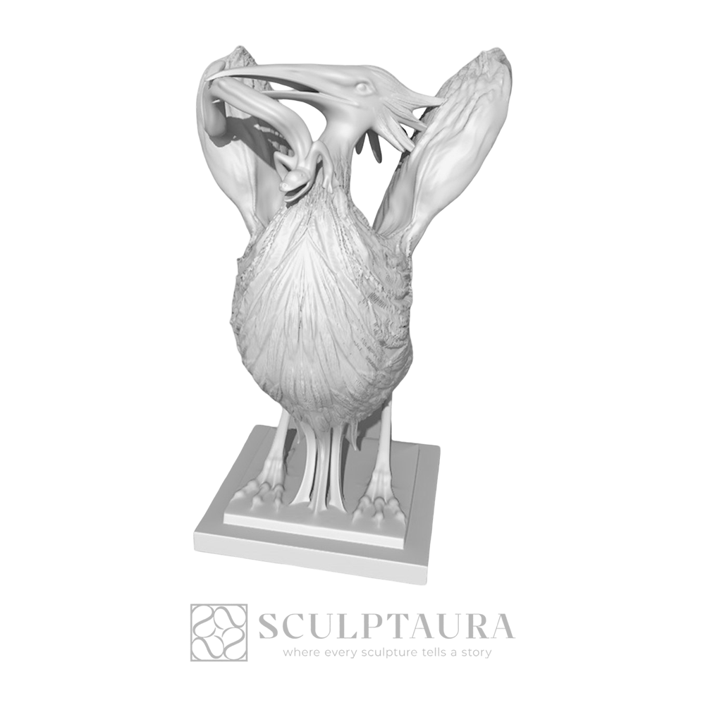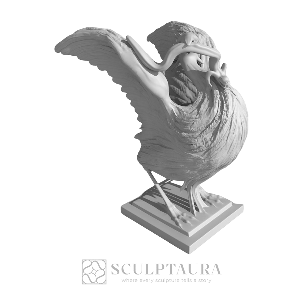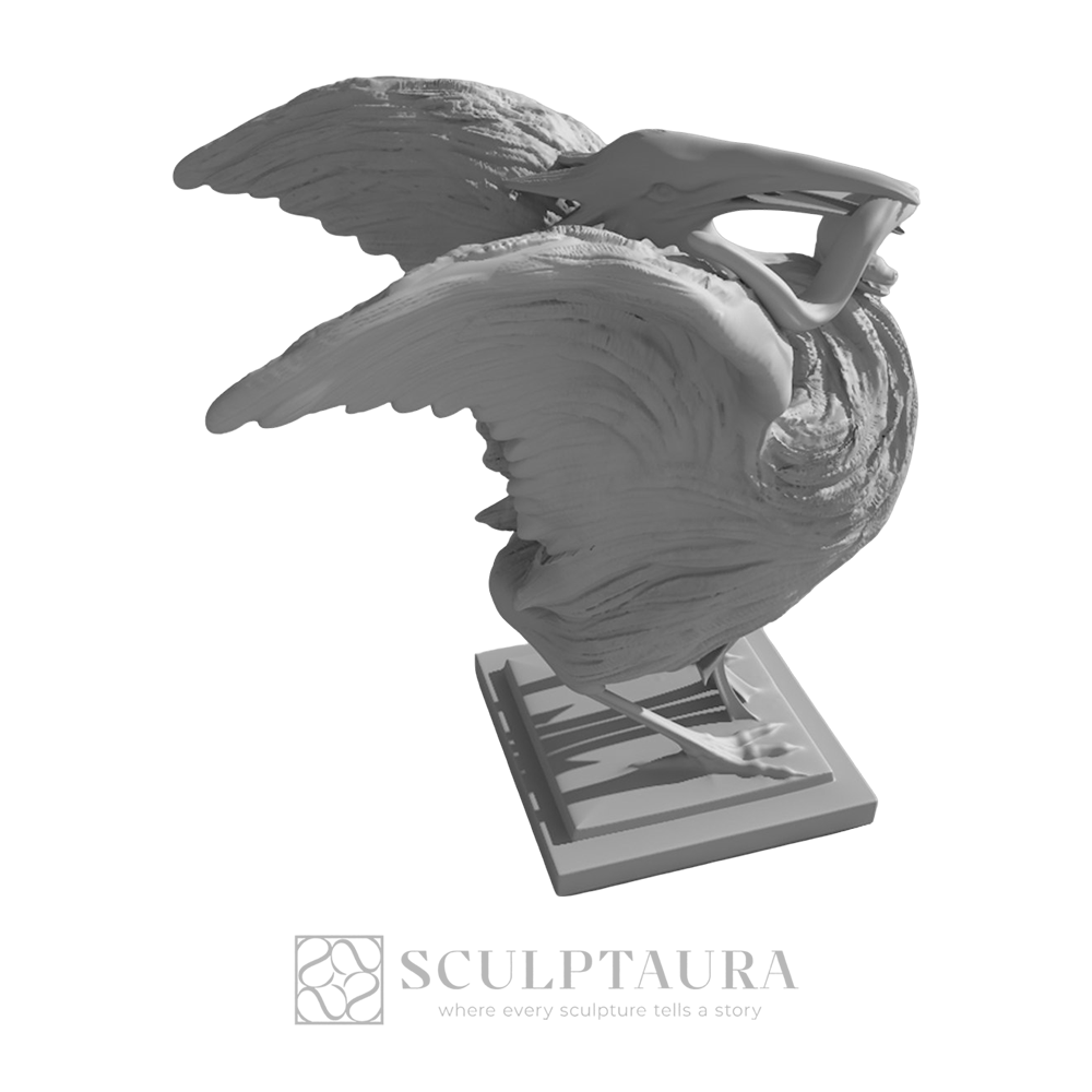 A dynamic, striking bird figure captured in a moment of intense struggle or flight with a serpent. Masterfully sculpted to reflect raw strength and fluid motion.