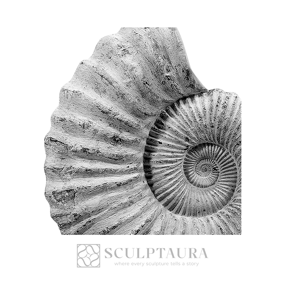 A magnificent, detailed spiral form capturing the intricate structure of a fossilized ammonite. Masterfully rendered to reflect a timeless vision of natural history and geometry.
