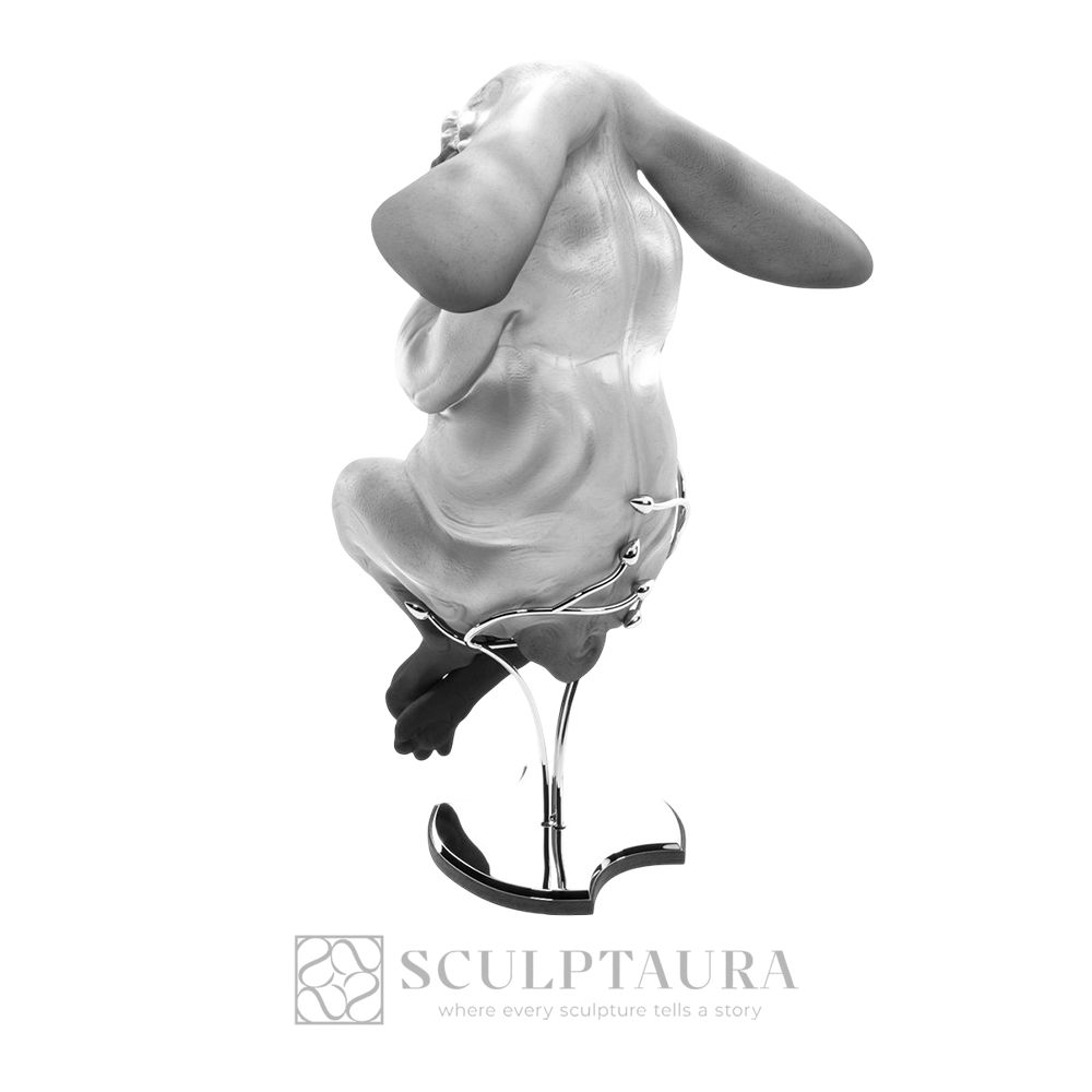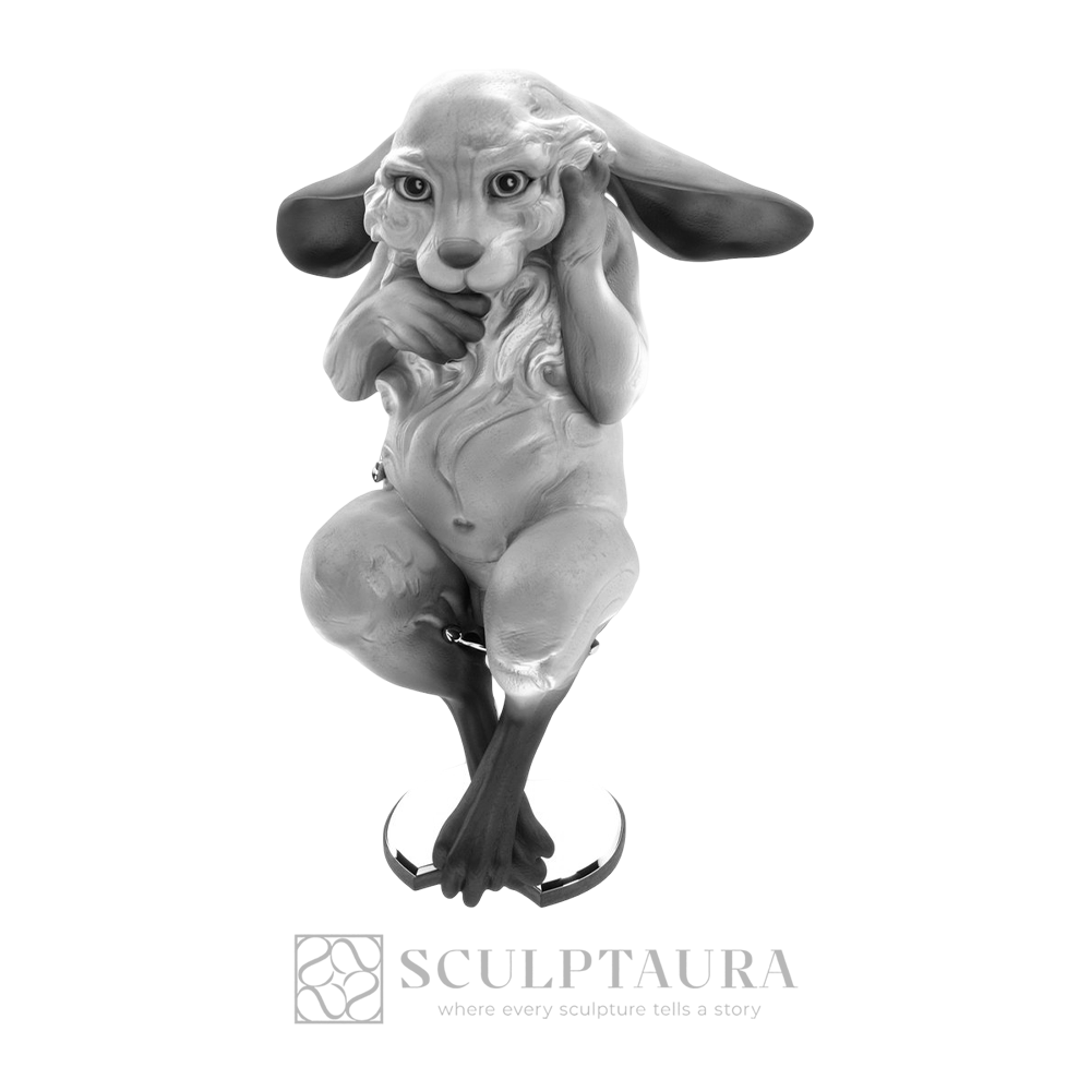 This exceptional figure features exaggerated ears and a smooth, stylized body with flowing tufts of fur. Finely fashioned for patrons valuing abstract concept and narrative spirit.