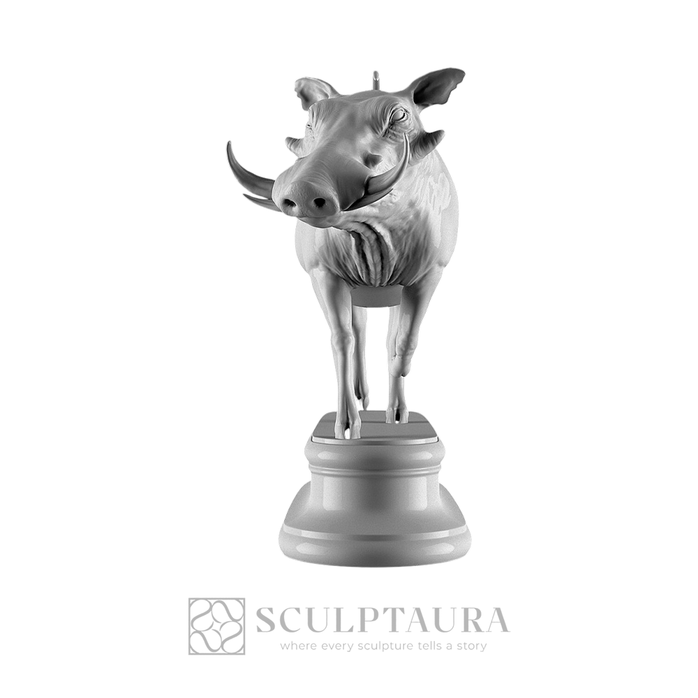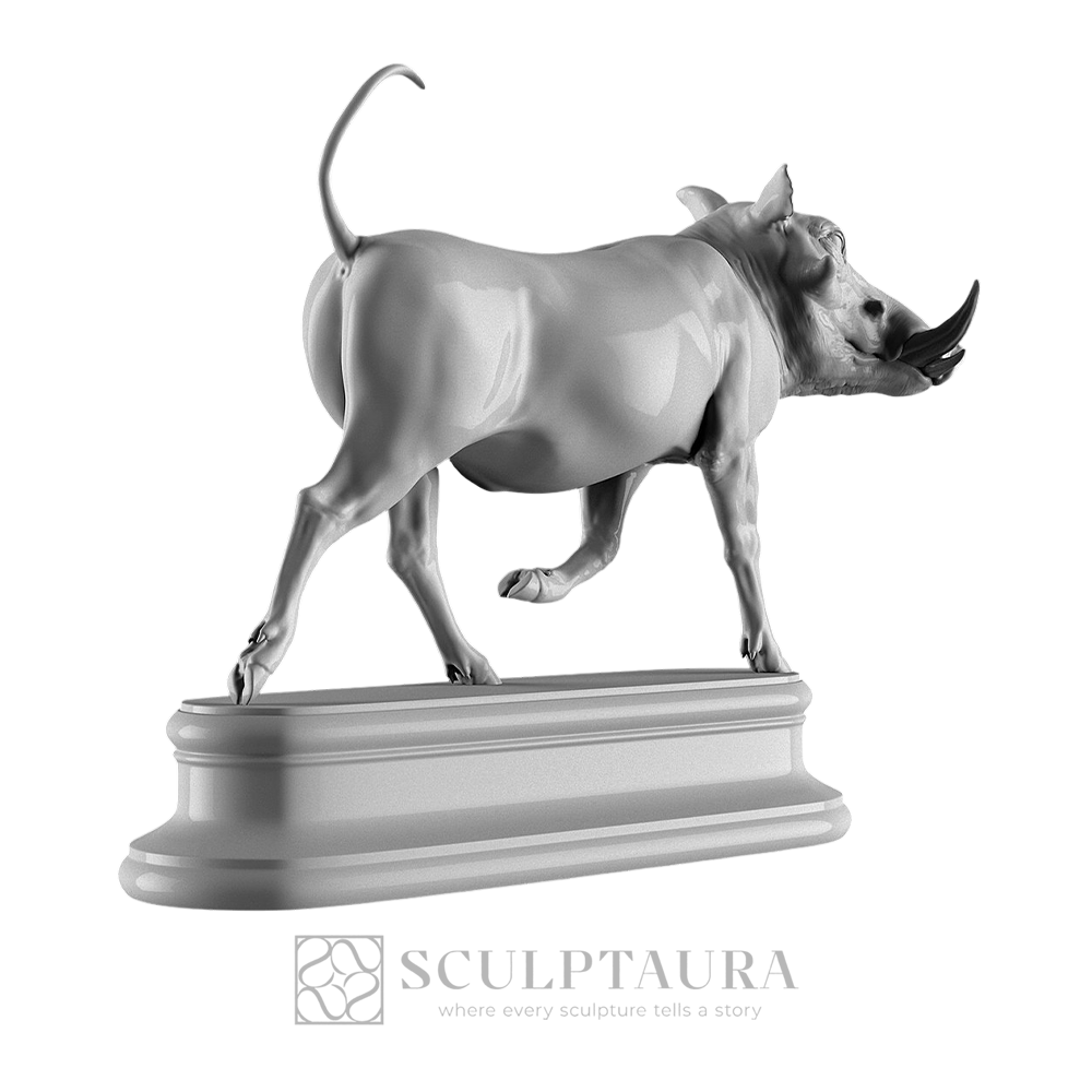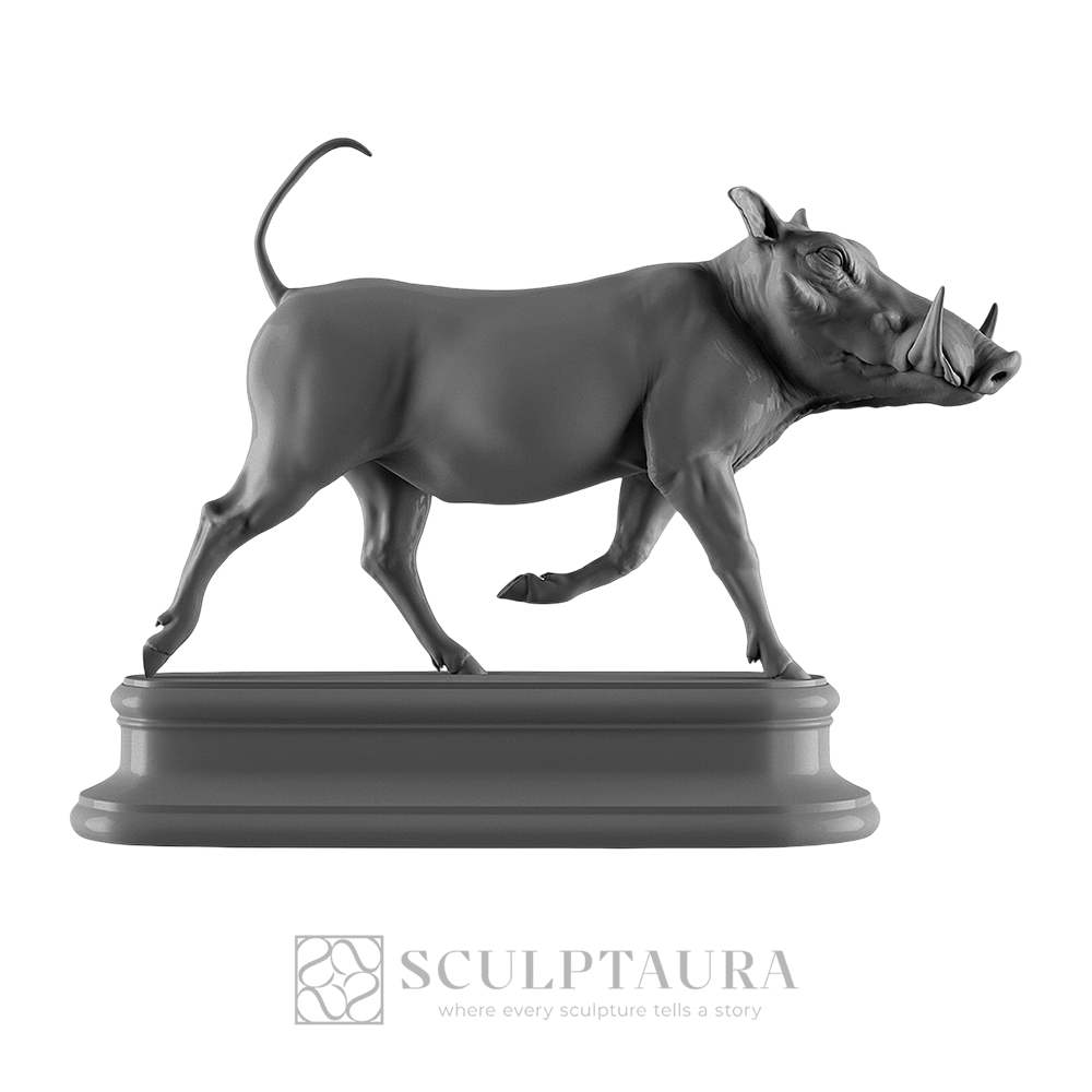 This rugged creature has large tusks protruding from its snout and is positioned in motion. Exceptional realism captures a gritty wilderness subject.